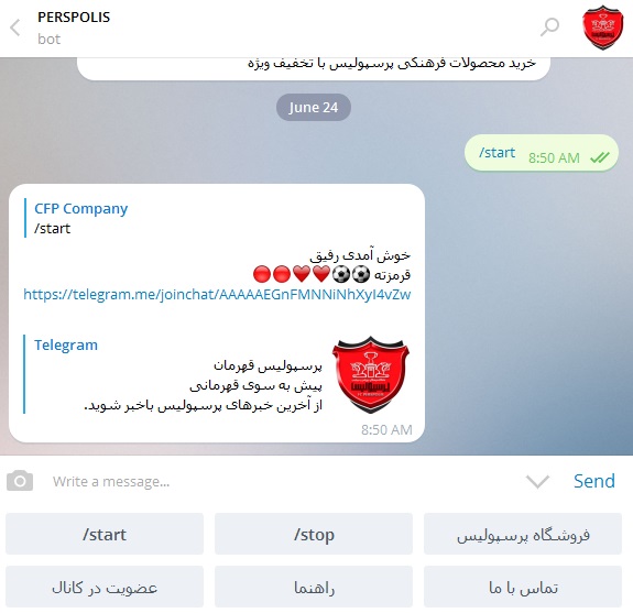 کلمات کلیدی:  تلگرام, ربات تلگرام, ربات تلگرام پرسپولیس, ربات تلگرام اخبار پرسپولیس, cfp