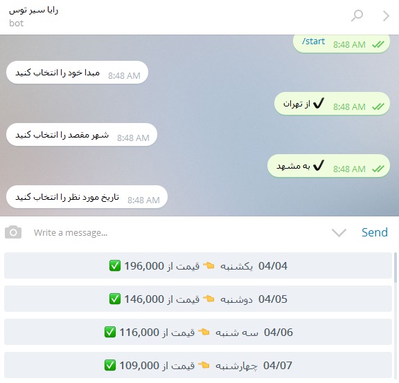 کلمات کلیدی:  تلگرام, ربات تلگرام, ربات تلگرام چارتر, بلیت چارتر, cfp