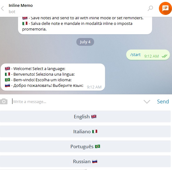 با استفاده از این ربات تلگرام، میتوانید یادداشتهای خود را به صورت قابل فراخوانی و آنلاین ذخیره کنید و بعدا در مکالمات خود با تایپ BNoteBot@ به آنها دسترسی پیدا کنید. برای استفاده از این ربات بر روی start کلیک کرده و سپس زبان مورد نظر را انتخاب کنید. با کلیک بر روی گزینه Add memo و افزودن متن، یادداشت ذخیره خواهد شد. با کلیک بر روی Saved memo گزینه هایی برای ویرایش، حذف، تنظیم یادآور و تاریخ برای یادداشت ها مشاهده خواهید کرد.