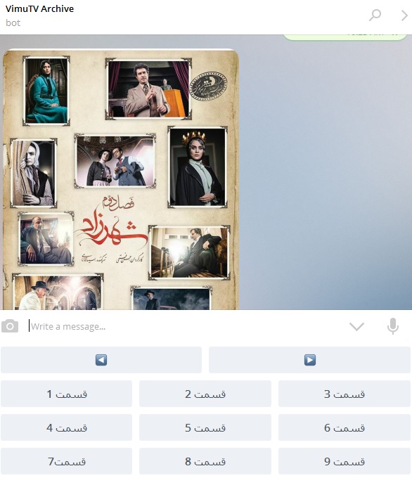دانلود رایگان فیلم و سریال: با استفاده از این ربات تلگرام، میتوانید سریالهای شهرزاد (فصل اول، فصل دوم) را به صورت رایگان دانلود نمائید. همچنین قادر خواهید بود تا به صورت رایگان، یازده فیلم سینمایی ایرانی از قبیل: نهنگ عنبر 2، ماجرای نیمروز و ...را مشاهده نمائید.