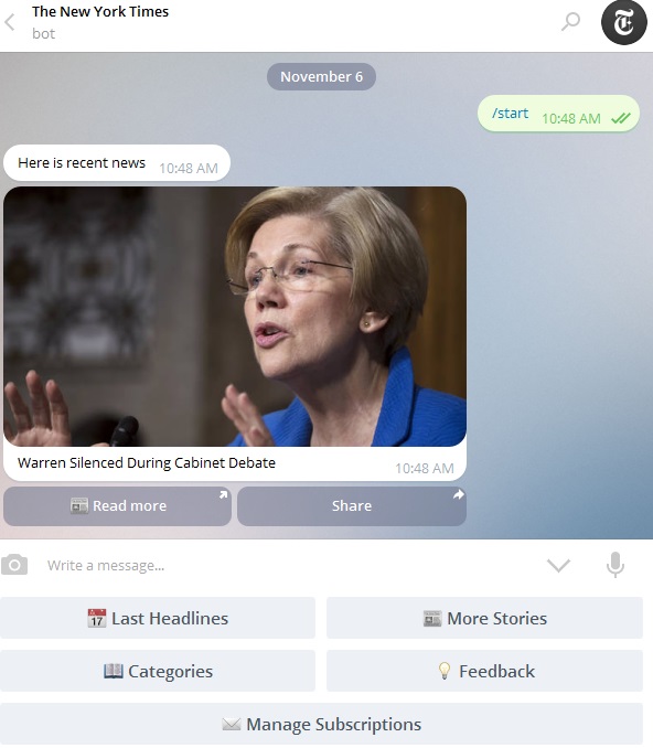 تلگرام, ربات تلگرام, ربات تلگرام نیویورک تایمز, نیویورک تایمز, cfp