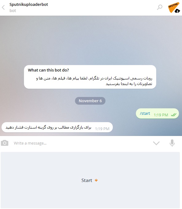 ربات تلگرام: ارسال خبر برای اسپوتنیک روسیه