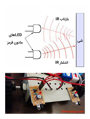ربات Arduino، از دو ماژول سنسور IR استفاده می کند که می تواند اشیا را در محدوده 5-6 سانتی متر تشخیص دهد.