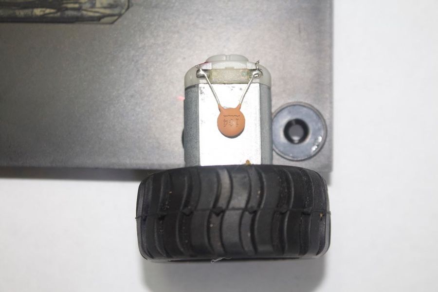 هر چرخ را بر روی یکی از موتورها قرار دهید. چسباندن موتور به شاسی به صورت زیر قرار میگیرد: