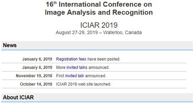 شانزدهمین کنفرانس بین‌المللی آنالیز و تشخیص تصویر ICIAR 2019 با هدف گردهم آوردن محققان، مهندسین و متخصصان علاقه‌مند به آنالیز و تشخیص تصویر است. پوشش هر دو برنامه و تحقیقات در حال حاضر به سوی ارتقای جایگاه آنالیز و تشخیص تصویر خواهد بود. این کنفرانس در راستای تحقق خلاقیت‌ها و نوآوری‌ها در زمینه آنالیز و تشخیص تصویر طی دوره‌های گذشته گام برداشته و خواهد برداشت.