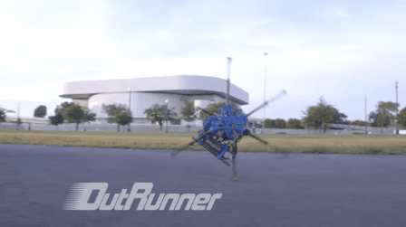 برخلاف رباتهای پادار دیگر، OutRunner نه شبیه انسان است و نه حیوان؛ نه ۲ پا و نه ۴ پا. اما همچنان با همان الگوی گامبرداری و نسبت جرم به قد، به حرکت میپردازد. مرکز ثقلش زیر مرکز دَوَران آن قرار دارد که این باعث ثبات در حین حرکت و حذف نیاز به استفاده از سنسورها و الگوریتمهای کنترلی شده. نتیجه اینکه این ربات میتواند روی چمن، سنگریزه، سراشیبی و حتی خمیدگی پیست مسابقه بدود. این ربات بوسیله دو مجموعه پای چرخشی که در هر طرف این ربات قرار دارد، حرکت میکند. این پاها یا به قولی چرخها با کنترل از راه دور و عوض کردن نقطه ثقل، ربات را قادر به حرکت در مسیر جدید میکنند. همچنین میتواند با 6 تا 12 پا (به انتخاب کاربر)، به حداکثر سرعت 32 کیلومتر بر ساعت برسد.