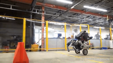 این ربات جدید چرخدار، قرار است برای جابجایی اشیاء از آن استفاده شود و به نظر میرسد چیزی بین Segway و ربات اطلس دوپا باشد. Handle رسماً معرفی نشده است، اما توسط مؤسس شرکت، مارک ریبرت (Marc Raibert) برای سرمایهگذاران نشان داده شده است. فیلم ارائه شده توسط سرمایهگذار ریسکپذیر، استیو جروتسون (Steve Jurvetson) در یوتیوب آپلود شد. هندل با طراحی نوآورانهی ترکیب شده از چرخ و پا، دارای مکانیزم داینامیک بسیار پیشرفتهای است که به آن اجازه خواهد داد در هر لحظه تعادل خود را به طور کامل حفظ کند و علاوه بر این، ربات مورد نظر دارای دانشی خواهد بود که به آن اجازه میدهد به خوبی و با توجه به هر موقعیتی، سنگینی خود را در جهت صحیحی پخش کند. او در ادامه خاطرنشان کرده است که استفاده از چرخها باعث بهینهسازی عملیات حرکت به میزان بالایی شده است، هرچند که عدم امکان استفاده و سختی روند حرکت در محیطهایی که دارای زمین ناهمواری هستند، از نقاط ضعف این نوع طراحی است. هدف اصلی مسئولان این کمپانی از طراحی و ساخت ربات هندل این است که یک وسیلهی بسیار بهینه و کارآمد برای جابهجایی اشیای مختلف در محیطهایی نظیر انبارهای بزرگ به وجود بیاورند.