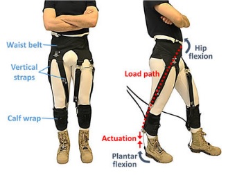 ربات Exosuit یک ربات توانبخشی هوشمند بوده که در طول راه رفتن از طریق یک پارچه چند منظوره با قابلیت اتصال کابل، ایجاد نموده و به لگن و عضلات پا کمک می‌کند. عملکرد تابع عضلات در مفصل ران و مچ پا را تقلید نموده و نیروها را از طریق ترکیبی از انواع کشش‌ها فعال می‌کند. واحدهای محرک بر روی تیغه پوشاننده نصب شده‌اند (به عنوان مثال در یک کوله پشتی) و هر یک از کابل‌ها را برای انتقال نیرو به پایین پایه مربوطه می‌گیرد.