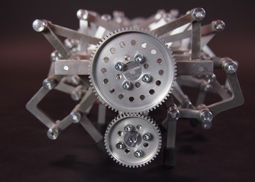 ربات Aluminalis یک ربات چندپا هوشمند بوده که هر طرف توسط یک موتور رانده میشود و چرخ دندهای را هدایت میکند که خود آن یک چرخ دنده اصلی را هدایت نموده تا یک میللنگ چهار بخشی را به وجود آورد که یک مجموعه پیچیدهای از ارتباطات را هدایت میکند. چهار بخش میل لنگ در هر طرف 90 درجه از فاز با یکدیگر است به طوری که حداقل یک جفت همیشه بر روی زمین ثابت است.