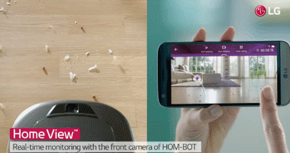 ربات Hom-Bot، توانسته با بهبود امکانات قبلی و اضافه کردن قابلیتهای جدید نگرانی شما نسبت به تمیزی خانه را کاملا برطرف کند. با امکانات دوربین از راه دور در ربات Hom-Bot الجی شما میتوانید از گوشی هوشمند خود برای انتخاب فضاهایی که بیشتر باید تمیز شوند استفاده کنید. نرمافزار مسیریابی و پیمایش در هر جاروی رباتیکی در مرکز اهمیت قرار دارد و این در مورد جدیدترین ماشین خانگی الجی نیز صدق میکند. Turbo Plus با پردازنده دو هستهای نیرو میگیرد و از نرمافزار هوشمند Robonavi استفاده میکند تا در اطراف حرکت کند و به موانع و اشیای اطراف مثل پایههای صندلی و پلهها برخورد نکند. برای انجام این کار، این سیستم باید ببیند کجا میرود. در این سیستم سه دوربین گنجاندهشده است که امکان فیلمبرداری از محیط اطراف را میدهد؛ مثل سقف بالای سرش، پیگیری جایی که بوده است و جایی که قرار است برود.