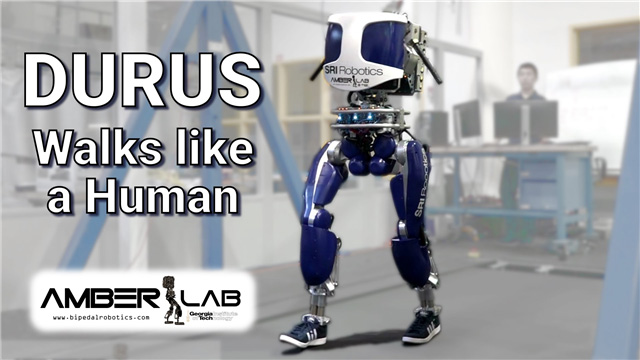 شبیهسازی حرکت انسانها (که در طول صدها هزارسال تکامل یافته است) به کمک موتور و تجهیزات مکانیکی، بسیار دشوار است. اخیرا تیمی تحقیقاتی موفق به شبیهسازی بسیار خوب این حرکت شده است و برای این که حرکت ربات خود را طبیعیتر جلوه دهد، در طراحی آن از کفشهایی شبیه کفشهای انسانها استفاده کرده است. راه رفتن رباتها و شبیهسازی هرچه بهتر آنها برای نزدیک شدن به حرکت انسانها، یکی از چالشهای همیشگی مهندسان رباتیک بوده است. راه رفتن انسانها در طول صدها هزار سال تکامل پیدا کرده است و شبیهسازی این حرکت به کمک تجهیزات الکترونیکی و مکانیکی مانند سروموتورها، امری دشوار است. به تازگی، تیمی از محققان موسسهی فناوری جورجیا توانستهاند این حرکت را به خوبی روی ربات خود پیاده کنند و حتی کفشهایی شبیه به کفشهای انسانها در طراحی خود استفاده کنند. البته نکتهی اساسی در راه رفتن طبیعی این ربات، کفشهای آن نیست؛ بلکه کپیبرداری از مشخصات فیزیکی و نحوهی راه رفتن انسانها، نکتهی اساسی طراحی این ربات است. رباتها معمولا پاهایی با کف صاف دارند که برای حفظ تعادل به آنها کمک میکند. برای نمونه میتوان ربات اطلس از شرکت بوستون داینامیکس را مثال زد که حرکتی بسیار خشک و غیر طبیعی دارد اما در حفظ تعادل بسیار عالی عمل میکند. این ربات جدید که DURUS نام دارد، به خوبی مانند انسان راه میرود. دوروس ابتدا پاشنهی پا را روی زمین قرار میدهد و پس از قرار دادن کامل پا روی زمین، از پنجهها برای حرکت رو به جلو استفاده میکند. تیم تحقیقاتی برای بهبود هرچه بهتر این شبیهسازی، انحنایی را در پاهای این ربات تعبیه کردند.