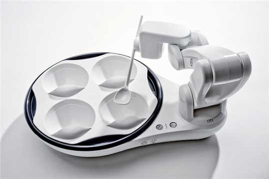 هدف از طراحی این ربات، کمک به افرادیست که از بیماریهایی همچون اماس، ALS، پارکینسون و سایر ناتوانیهای جسمی رنج میبرند. قاشق این دستگاه به گونهای طراحی شده که میتواند محتویات کاسهها را از قسمتهای کناری آنها برداشته و تا نزدیکی دهان فرد، بالا بیاورد؛ لذا بدون کوچکترین کمکی از اطرافیان میتواند غذا بخورد. همچنین از چهار کاسه جداگانه و بازویی رباتیک که یک قاشق به آن متصل است، تشکیل شده است. طراحی این دستگاه به گونهایست که قادر است با یک بار تنظیم، قاشق را در مسیر از پیش تعیینشده حرکت دهد و غذا را در دهان فرد معلول قرار دهد. در خصوص ویژگی های دیگر این ربات نیز باید گفت که لازم نیست هیچ گونه نگرانی را بابت تمیز کردن آن به خود راه دهید چرا که قاشق و کاسههای این دستگاه قابل شستوشو بوده و میتوان آنها را در ماشینهای ظرفشویی و مایکروویو نیز قرار داد.