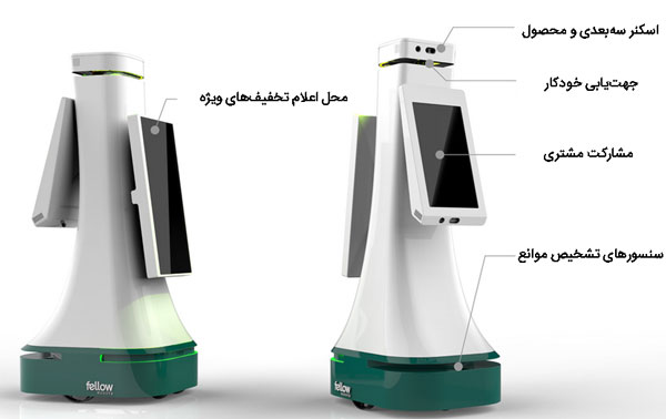 ربات Oshbot یک ربات اجتماعی هوشمند بوده که فعالیت خود را در فروشگاهها و مراکز خرید برای خوشامدگویی، هدایت و تعامل با مشتری انجام میدهد. همچنین قادر است تا موجودی تمام کالاها را در قفسه به اطلاع مسئول فروشگاه رسانده و در صورت لزوم، کمبود اقلام موردنیاز را هشدار دهد. دارای دو صفحه نمایش یکی در قسمت جلو و دیگری در قسمت پشت است. به طور کلی، تاثیری که اینگونه از رباتها در مراکز خرید میتوانند داشته باشد، اینست که با توجه به تعاملگرا بودن آن، حس خوشایندی را برای مشتری فروشگاهها و مراکز خرید ایجاد میکند.