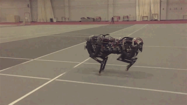 سگ بزرگ توسط آژانس پروژههای تحقیقاتی دفاع پیشرفته (DARPA) تأمین مالی شده به این امید که به عنوان یک ربات باربر برای همراهی سربازان در ناهمواریهای زمین باشد. به جای چرخها یا زنجیر چرخها، سگ بزرگ با استفاده از چهارپا برای حرکت استفاده میکند که قادر به پیمایش در سراسر سطوحی است که ممکن است با استفاده از چرخ، بشکند. پاها شامل سنسورهای مختلفی از قبیل موقعیتهای مفصلی و تماس با زمین است. سگ بزرگ همچنین ویژگیهای یک ژیروسکوپ لیزری و سیستم دید استریو را دارد.