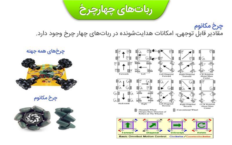 o رباتهایی که شبیه خودرو، دارای فرمان هستند.