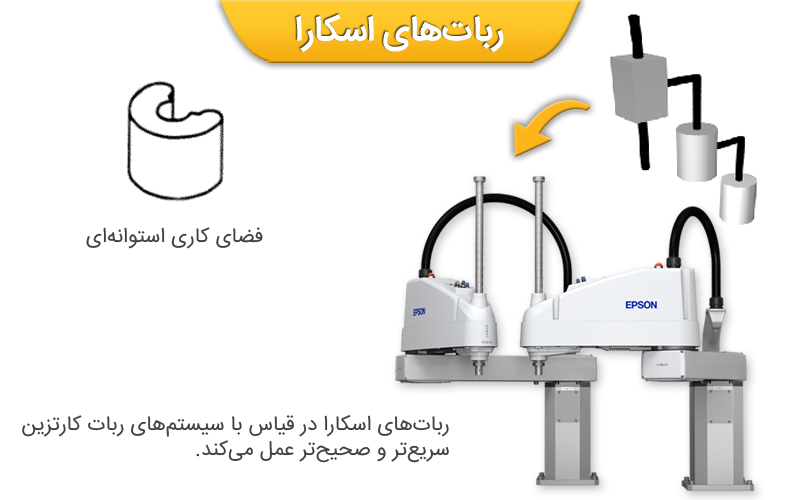 ربات اسکارا: در سال ۱۹۸۱، شرکتهای سانکیو سیکی، پنتل و NEC مطلب کاملا جدیدی را در زمینه رباتهای مونتاژکار، ارائه نمودند. این ربات با راهنماییهای پروفسور هیروشی ماکینو، که یکی از اساتید دانشگاه یاماناشی بود، توسعه داده شد. این ربات را اسکارا نامیدند. بازوهای این ربات در راستای Z محکم بوده ولی در راستای XY اجازه انطباق با سوراخها را میدهد.