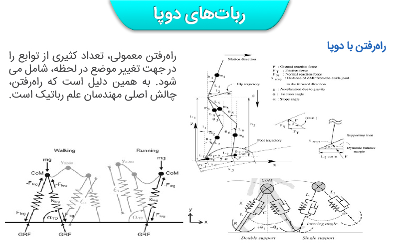 یکی از ویژگیهای مهم ربات انساننما، راه رفتن روی دو پا است. حفظ تعادل ربات روی دو پا، کار سختی است که باعث میشود تا کنترل ربات نسبت به رباتی که روی دو چرخ حرکت میکند، بسیار مشکل شود. از طرفی، حرکت بر روی دوپا قابلیتهای زیادی نظیر بالا رفتن از پلهها و حرکت در محیطهایی که مخصوص انسانها ساخته شدهاند به ربات میدهد که در رباتهای دیگر، مثلا رباتهای چرخدار، وجود ندارد. با پیشرفت صنایع مختلفی همچون ساخت موتورهای کوچک و قوی و در عین حال کممصرف، ساخت پردازندههای قوی و کوچک، باتریهای با دوام، سنسورهای کوچک و حساس، و به وجود آمدن شبیهسازیهای کامپیوتری، بسیاری از جنبههای مشکل ساخت روبات انساننما برطرف شده و اکنون میتوان با کمتر از 1000 دلار روبات آمادهای خرید که قادر به راه رفتن روی دو پا باشد.